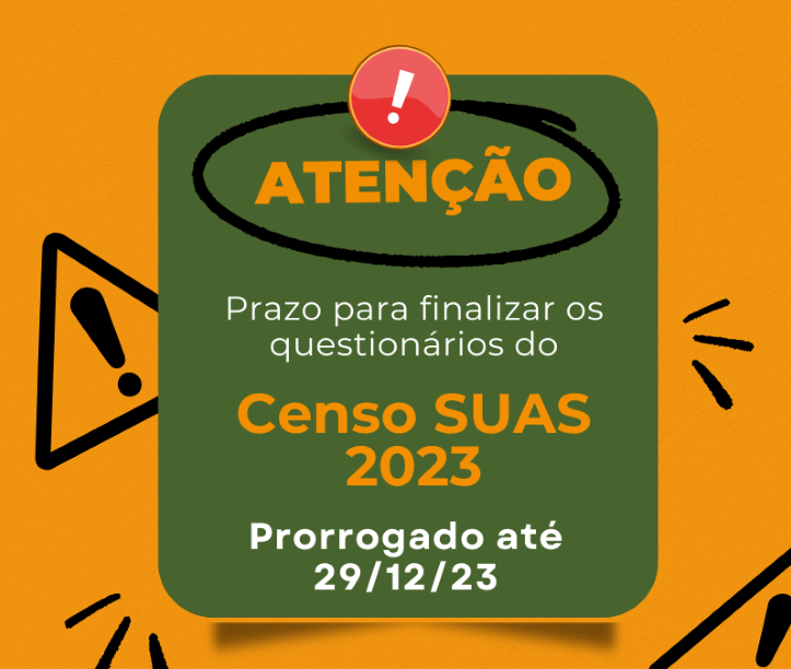 Adiado o prazo do preenchimento do Censo SUAS 2023 para dia 29 de dezembro de 2023