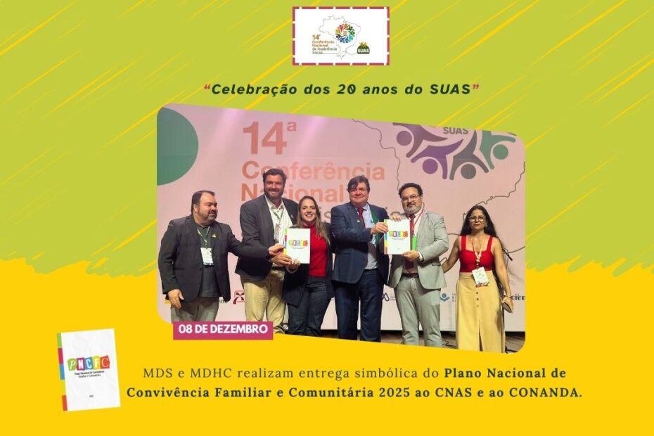 Como parte das celebrações pelos 20 anos do Sistema Único de Assistência Social (SUAS), o Ministério do Desenvolvimento e Assistência Social, Família e Combate à Fome (MDS), por meio daContinue a ler »PNCFC atualizado é entregue ao Conanda e ao CNAS durante a 14ª Conferência Nacional de Assistência Social