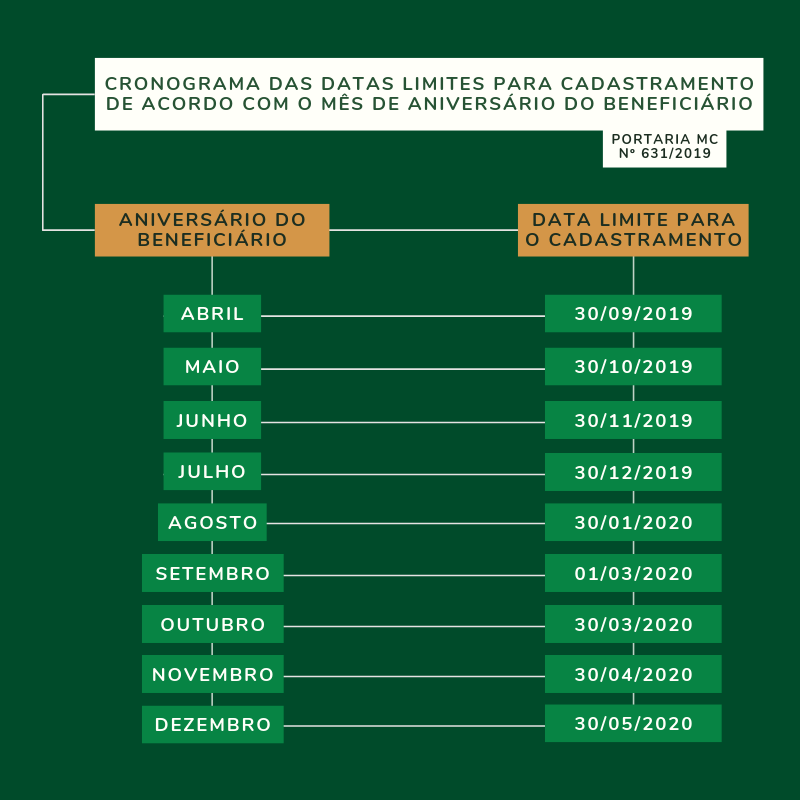 VEJA ABAIXO O CRONOGRAMA DAS DATAS LIMITES PARA CADASTRAMENTO.