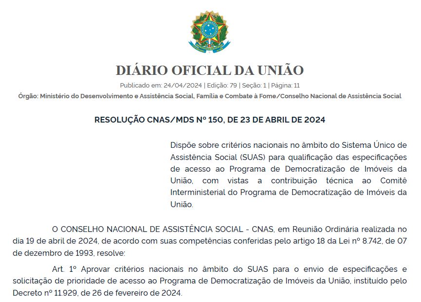 A Secretaria Nacional de Assistência Social, pelo Departamento de Gestão do SUAS, organizou e propôs critérios nacionais no âmbito do Sistema Único de Assistência Social – SUAS para qualificar o acesso ao Programa de Democratização de Imóveis da União lançado pela Secretaria Nacional do Patrimônio da União – SPU.