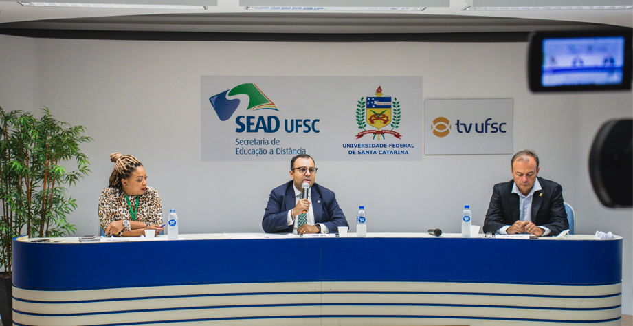 O secretário Luciano de Castro, da SEAD/UFSC, e coordenador do projeto, lembrou do pioneirismo da UFSC na área de EAD, na sua expressiva produção de capacitações em diferentes projetos de qualidade desde 1995. “A SEAD tem apoiado e desenvolvido cursos que integram inovadoras tecnologias e recursos educacionais.
