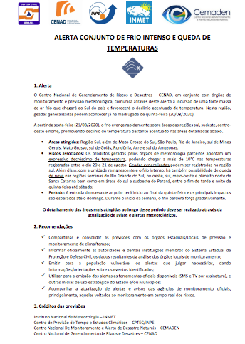 Leia também o Alerta Conjunto do sistema de defesa civil sobre a frente fria, clicando na imagem abaixo ou aqui.