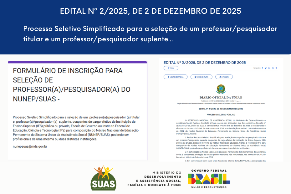 Processo Seletivo Simplificado para a seleção de um professor/pesquisador titular e um professor/pesquisador suplente, ocupantes de cargo efetivo de Instituição de Ensino Superior (IES) pública ou privada, Escola de GovernoContinue a ler »EDITAL Nº 2/2025, DE 2 DE DEZEMBRO DE 2025