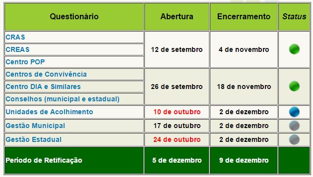 Censo SUAS 2016 – Calendário atualizado