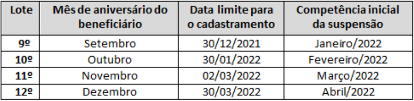 Com a Portaria nº 686, de 25 de outubro de 2021, os prazos para inscrição no Cadastro Único foram mais uma vez adiados. O novo calendário de inscrição e suspensão do pagamento de benefícios é o seguinte: