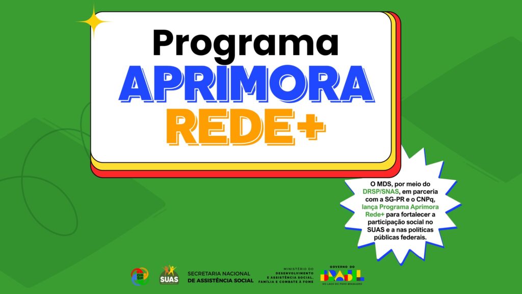 - Aprimora Rede+: MDS, por meio do DRSP/SNAS, em parceria com SG-PR e CNPq, fortalece a participação social no SUAS e nas políticas públicas federaisO Departamento da Rede Socioassistencial Privada da Secretaria Nacional de Assistência Social do MDS (DRSP/SNAS/MDS) lança o Programa Aprimora Rede+, em parceria comContinue a ler »Aprimora Rede+: MDS, por meio do DRSP/SNAS, em parceria com SG-PR e CNPq, fortalece a participação social no SUAS e nas políticas públicas federais