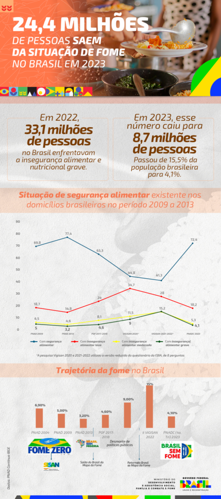 Os dados apontam queda de 33,1 milhões para 8,7 milhões de pessoas em insegurança alimentar grave.